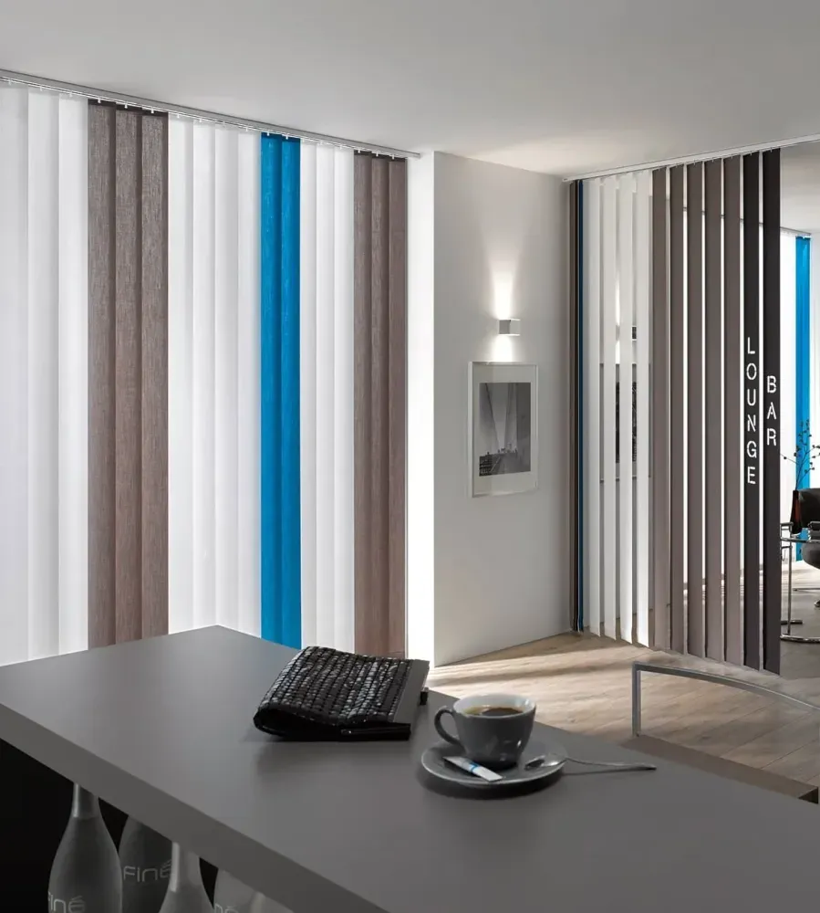 Stores vénitiens : Composés de lames horizontales, ils permettent un contrôle précis de la lumière et de la chaleur entrant dans la pièce.