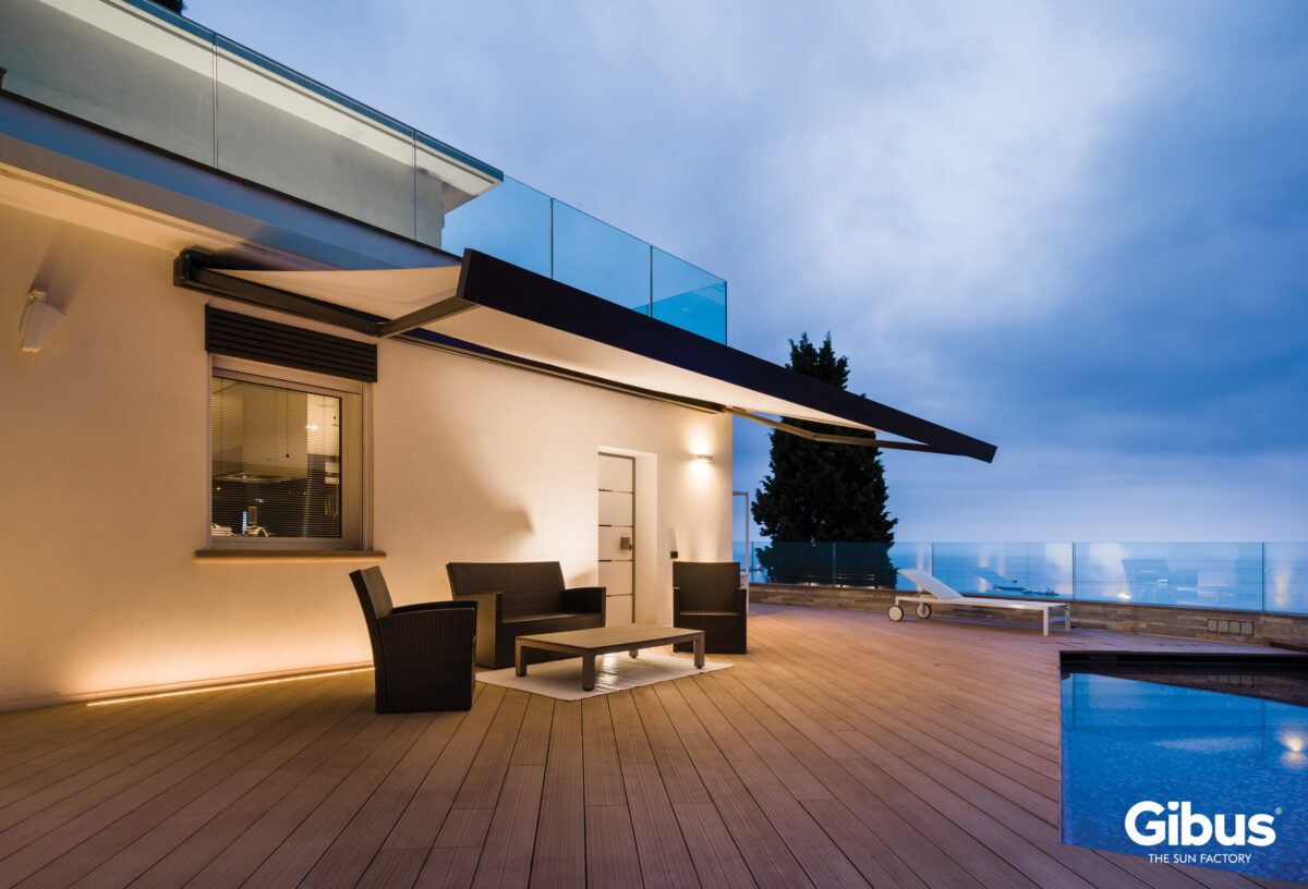 Protection Totale (Coffre Intégral) : Une fois repliés, la toile et les bras sont entièrement protégés dans un coffre hermétique en aluminium extrudé, garantissant une longévité maximale face aux intempéries et à la pollution.