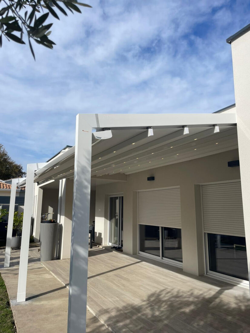 Pour ce projet d'aménagement extérieur à proximité du lac et de l'océan, nous avons accompagné nos clients dès la réflexion sur la couverture totalement modulable de leur terrasse. Avec les conseils avisés de notre technico-commercial, qui a su répondre à toutes leurs attentes de confort thermique et de flexibilité, le choix s'est porté sur un équipement haut de gamme à la pointe de l'innovation. La pose a ensuite été effectuée par notre équipe Nova Stores, reconnue pour son professionnalisme et la qualité de son travail. Une relation fluide et conviviale a rythmé l’ensemble du chantier, aboutissant à une réalisation parfaitement conforme aux attentes.