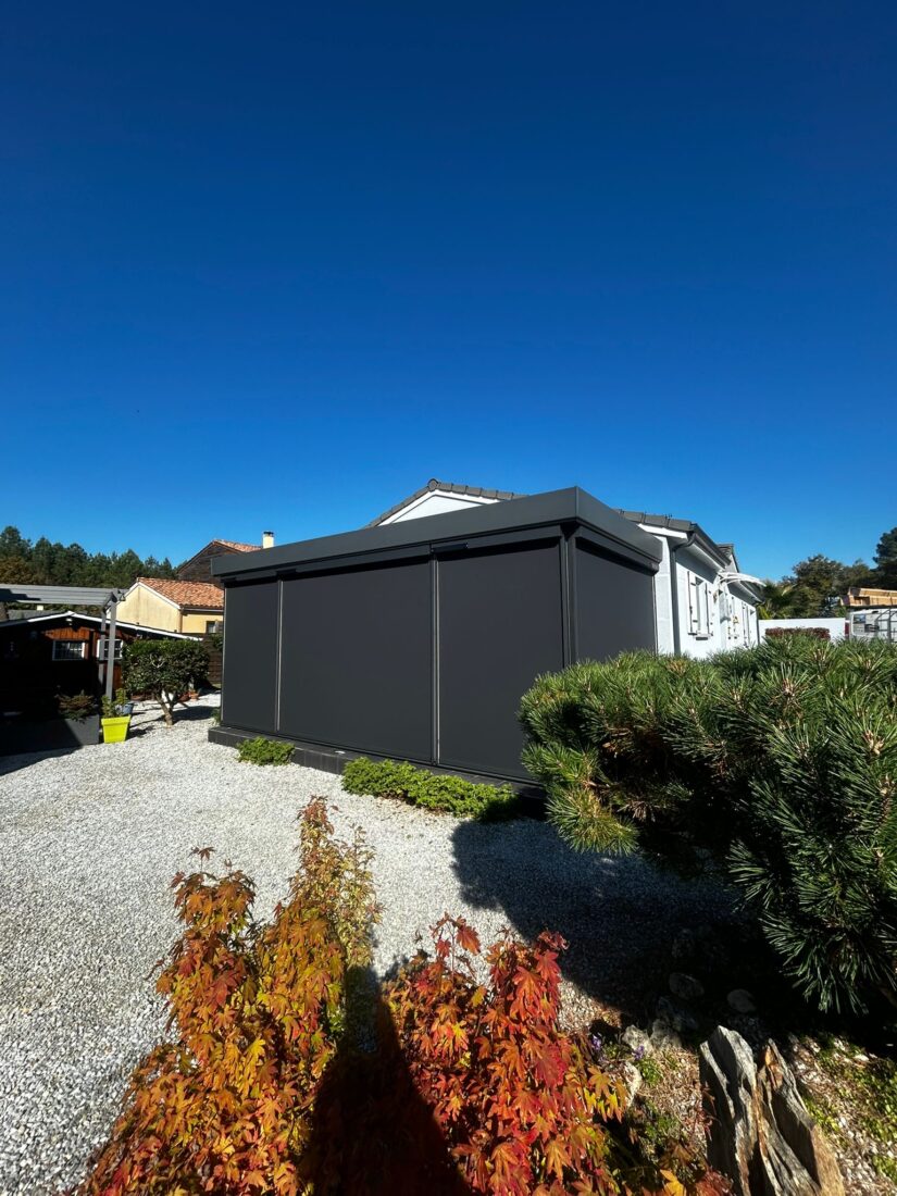 Installation d'une pergola bioclimatique rétractable Velvet